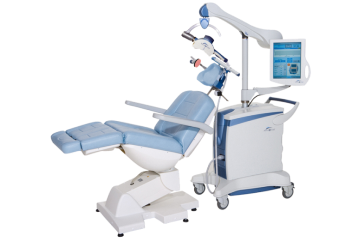 専用の治療室でトリートメントチェアに座っていただきます。(治療開始前にアクセサリなどの金属類を外していただきます。)